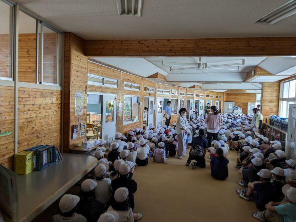 これから集団下校をする場面がでてくるかもしれないので、班のメンバーをしっかり覚えて、班長のいうことをしっかり聞いて行動できるようにしてほしいと思います。上学年の子どもたちは1年生のお世話もよろしくお願いします。