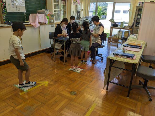 今日は昼休み時間に眼科検診がありました。校医である萩原先生から全校児童の目の様子を見ていただきました。各学年職員室前の廊下に並び、自分の番を待っていましたが、あっという間に検査も終わったので、びっくりしていた様子でした。後日、結果が通知されますので、もし異常があった場合は眼科病院への早めの受診をお願いいたします。