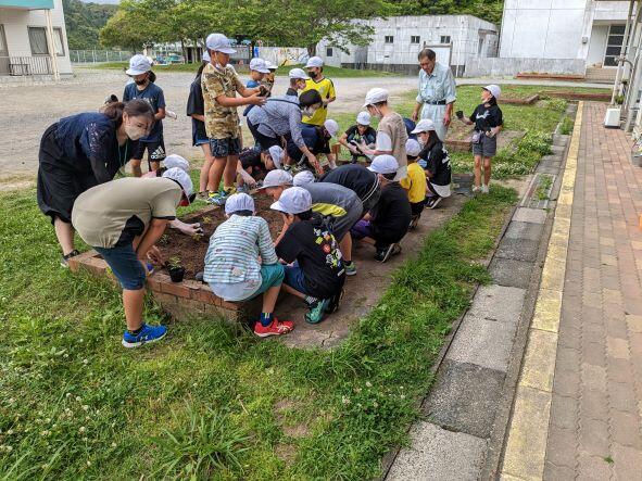 種から大きく生長した花の苗を4年生が花壇に植えました。みんなで協力してきれいに植えました。これから梅雨の時期を迎え、水やりはしばし休憩ですが、梅雨明けからの水やりをきちんと行ってきれいな花壇にしてほしいと思います。
