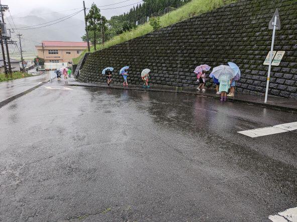 梅雨に入りましたが、子どもたちは雨にも負けず、頑張って登校しています。長靴を履いたり、傘と合羽のダブルで雨濡れに対応したりして、登校する様子が見られます。残念ながら、雨降りの時は車での送迎が多くなり、子どもたちが学校入り口付近の横断歩道をスムーズに渡れないときもあるので、特別な事情がないとき以外は車での送迎は控えていただきたいと思います。雨の時の登校は、子どもたちに忍耐力や降雨時の対応力、降雨時の自然の変化に気づくことなど、いろいろなことを学ぶ良い機会だと思っています。