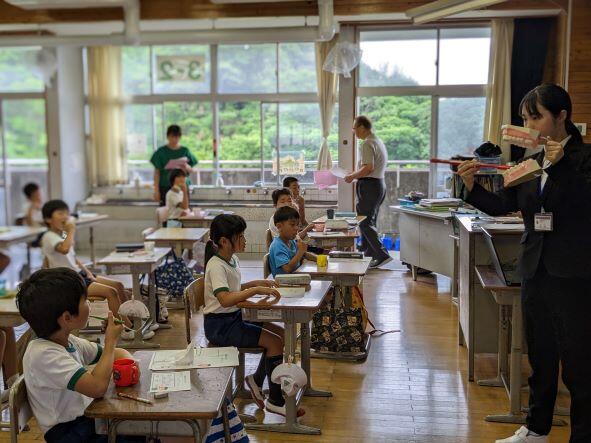 みんな礼儀正しく、先生の言うことをしっかりと聞いて行動できていました。おいしいお弁当とお菓子を頬張り、楽しい時間となったようです。残念ながら3年生と6年生はタイミングが悪く写真が撮れませんでした。すみません。
