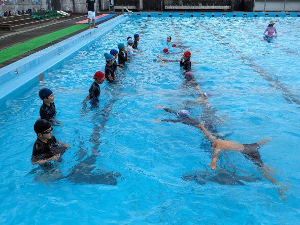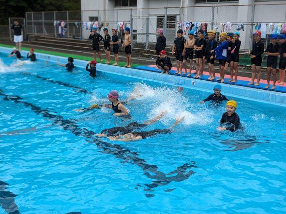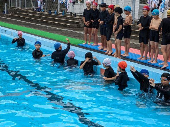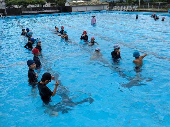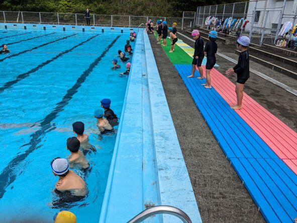 今日は3年生と4年生がプール開きを行いました。今日は曇りの天気で少し寒かったようですが、元気よく今年度の初プールを楽しみました。これから、10時間程度の水泳学習となりますが、ルールをしっかりと守って安全に気をつけながら頑張ってほしいと思います。今年は何メートル泳ぐとかの目標をしっかりと設定して、頑張ることが泳力を向上につながります。布団の上とかでも練習はできますので、是非チャレンジしてほしいですね。