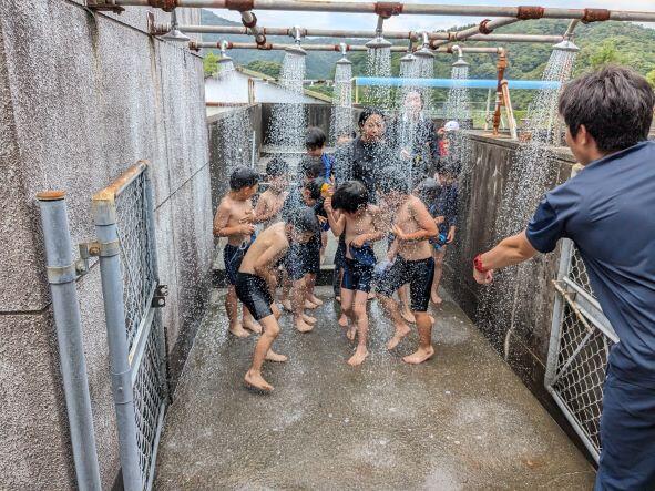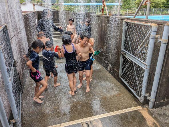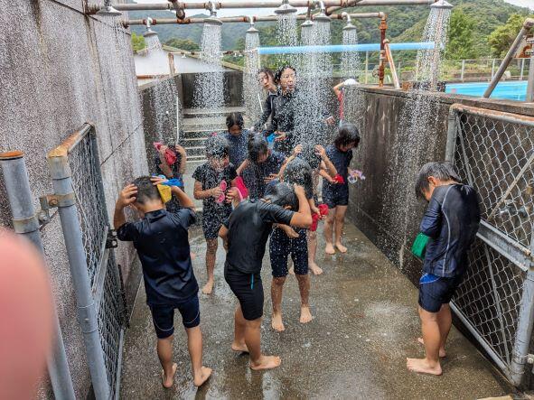 今日は1年生がプール開きでした。小学校に入って初めてのプールなので、とても楽しみにしてきた感じが伝わってきました。体育館で準備運動を終えてプールに入ってきた1年生は、まずはじめにシャワーを浴びました。水が冷たいので「キャーキャー」と叫ぶ子や黙って我慢強く耐える子などいろいろな表情が見えました。シャワーの後はプールに入って、水遊びを行いました。とっても楽しそうな表情にこちらも元気をいただきました。