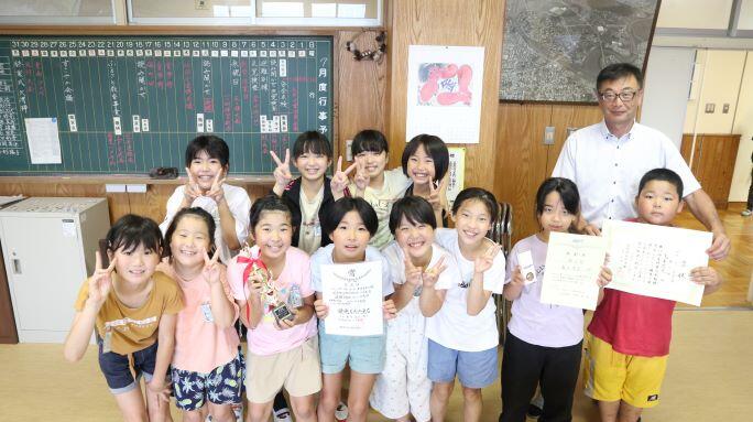 本校では、子どもたちがスポーツなどで良い成績を収めたときに表彰を行っています。ただ、体育館で行う全校朝会では時間が限られているので優勝した個人や団体のみを表彰しています。今回は優勝はできませんでしたが優秀な成績を収めた、バレーの団体と相撲の個人の子どもたちを校長室で表彰しました。これからも日々精進し、上位を目指して頑張ってほしいと激励しました。