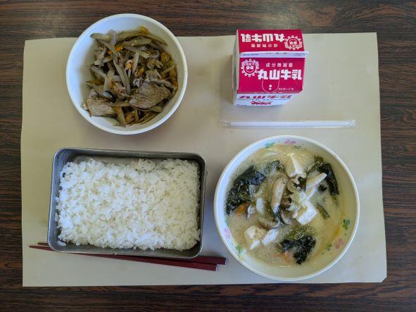 今日の献立は、きんぴらゴボウ、あすか汁、ご飯、牛乳です。あすか汁は     飛鳥汁は奈良県の郷土料理で、みそ汁の中に牛乳を加えた汁物で、 飛鳥時代に宮廷に献上されていた牛乳をいれて作られたのがはじまりとされています。 牛乳を加えることで少し甘みがあり、まろやかな味なので、子どもたちも好んで食べてくれそうです。とってもおいしかったです。