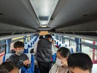 体育館で出発式を行い、2日間の修学旅行に出発しました。