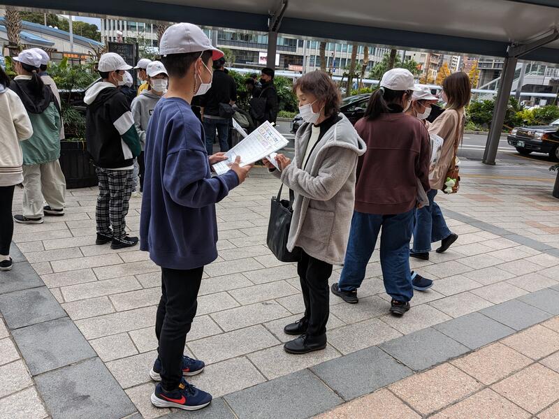 初めてのPR活動。はじめはオドオドしてましたが積極的に会話しています。まだまだ会話もできてない人もいますが、頑張ってほしいと思います。