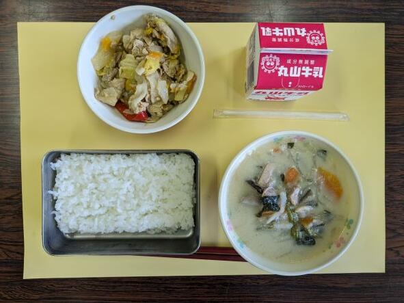 今日の献立は、中華スープと八宝菜丼、牛乳です。今日は中華メニューばかりでしたが、とてもおいしくいただきました。ウズラの卵の事故で八宝菜丼には卵が入っていませんが、入っているのと入っていないのでは意外に味の差があるんだなと感じたところです。