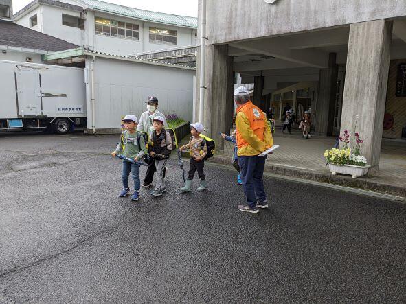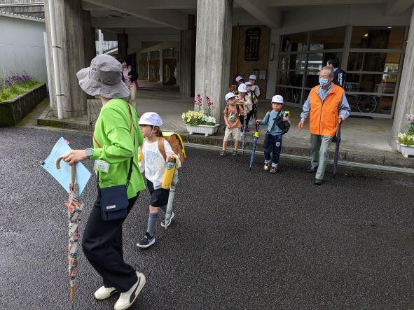 小学校での初めての授業を受けて、今日は3時間で下校した1年生。児童クラブに行くメンバー、2つのコースごとに家に帰るメンバーに分かれて学校を後にしました。下校時には学校協力者の重黒木さんと松井さんも一緒に帰っていただきました。しばらくは登下校も慣れないと思いますが上級生や学校協力者の方々の言うことをよく聞いて安全に気をつけて登下校してほしいと思います。