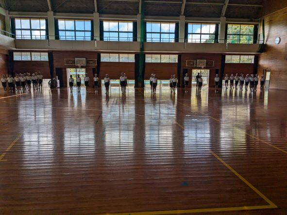 運動会に向けて初めての全校体育が実施されました。今日は開会式の入場・退場、エール交換などの練習を行いました。昼間はまだまだ気温も高いので子どもたちも大変だとは思いますが、練習をしっかりと積み、体力をつけながら本番を迎えてほしいと思います。運動会前は練習も多くなりますので、早めに就寝し、しっかりと睡眠をとるよう心がけてほしいですね。
