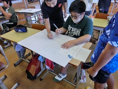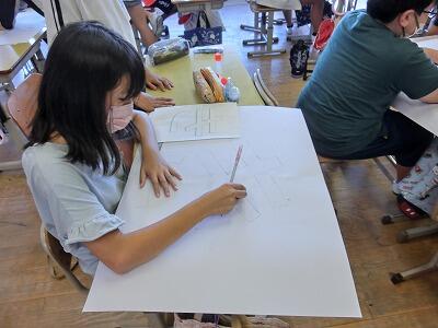 昨日は、5年生が運動会のスローガン作成を行っていました。遠くからでも文字が見えるように一文字ずつ丁寧に作っていました。