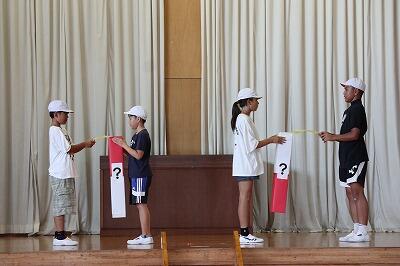 本日、朝の時間に運動会「結団式」をしました。初めに、運営委員会の子ども達が今年のスローガン「最後までかがやけ!ひとりひとりがあきらめず!」を発表しました。その後、団長・副団長・リーダーの紹介があり、団の色を決めました。赤団団長からは、「熱く盛り上げて、白団より声を出して、W優勝を目指します!」、白団団長からは、「全力で競技して悔いのない運動会にしたいです!」とそれぞれの抱負が聞かれました。