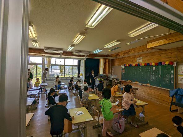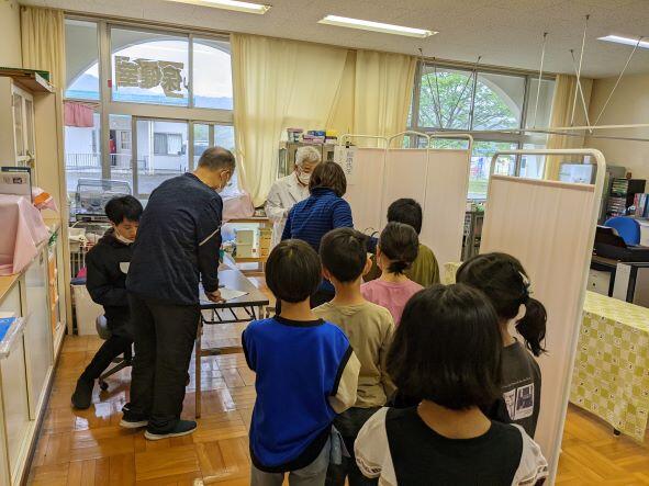 今日は昼休み時間に眼科検診がありました。校医である萩原先生から全校児童の目の様子を見ていただきました。各学年職員室前の廊下に並び、自分の番を待っていましたが、あっという間に検査も終わったので、びっくりしていた様子でした。後日、結果が通知されますので、もし異常があった場合は眼科病院への早めの受診をお願いいたします。