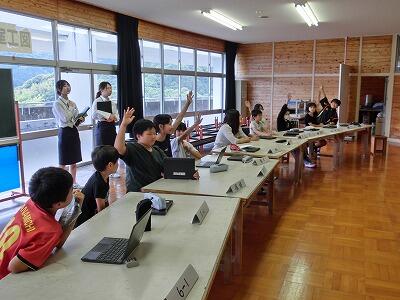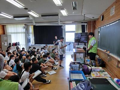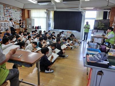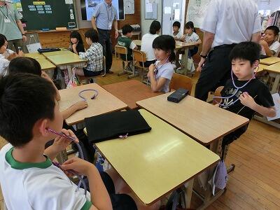 みやざき動物愛護センターに引き取られる犬や猫の数は、以前はとても多かったそうですが、最近はだんだんと減ってきて、しかたなく殺処分される犬や猫はいなくなったそうです。様々な動物や人間は、つながりあってみんな一生懸命生きています。それぞれの命を大切にしたいものです。最後に、生きている証として、みんなで自分の心臓の音を聞きました。みんな真剣に聞き入っていました。