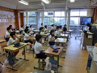 本日3時間目に、6年生を対象として、延岡ガイド・ボランティアの会の皆様に「子どもたちに伝えたいこと」のお話をしていただきました。