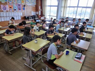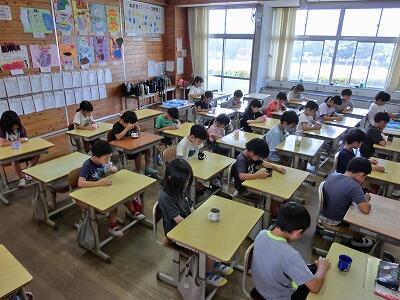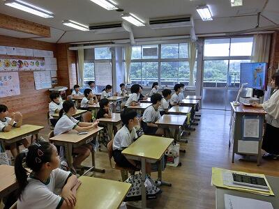 今回のテーマは、「延岡大空襲」でした。B29による焼夷弾の投下による死者は、300人以上だと聞きました。焼夷弾の仕組みや特攻隊についての解説もしていただき、戦争の悲惨さを子どもたちと共に学びました。子どもたちからは「人々の周りを焼いて逃げられなくし、その内側に爆弾を落としていくという攻撃があったと聞き、とても怖いと思いました。」という感想が聞かれました。これからの世の中を担う子どもたちには明るい未来をつくっていってほしいと思います。