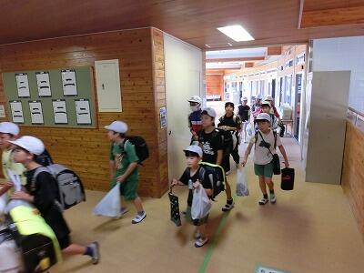 伊形小への道路は、1本しかありませんので、少しでも渋滞をさけるために、地区ごとに大きく4つの時間帯に分けて、お迎えに来ていただきました。保護者の皆様にご協力いただき、1時間弱で終えることが出来ました。ありがとうございました。