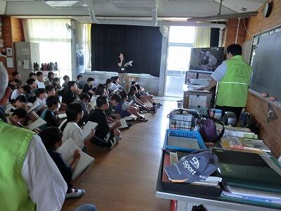今日は、「みやざき動物愛護センター」の方2名と、延岡市内の獣医の方の計3名の方々を招いて、4年生に「いのちの教育」をしていただきました。