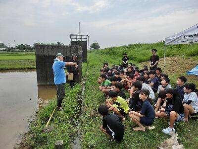 初めに田の役割として、土砂崩れや洪水を防いだり、生き物を育てる場になったりするということを教えていただきました。