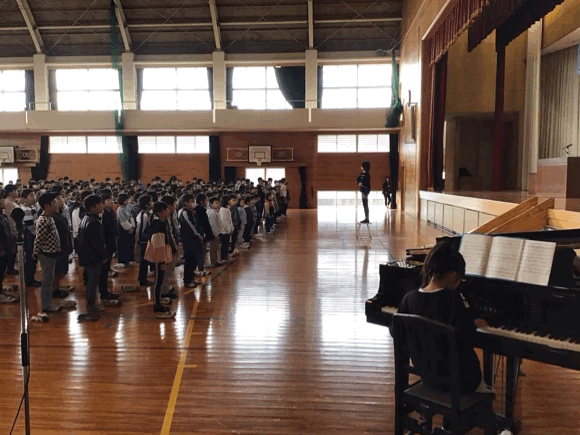 終業式では、1年生と5年生の代表児童が、2学期の振り返りや3学期の目標などを発表しました。