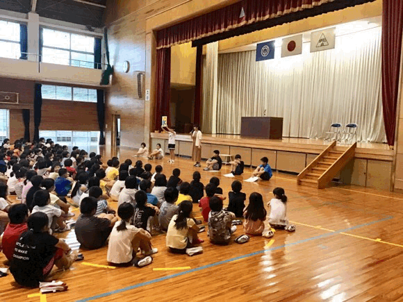終業式では、3年生と5年生の代表児童が、1学期を振り返って作文を発表しました。