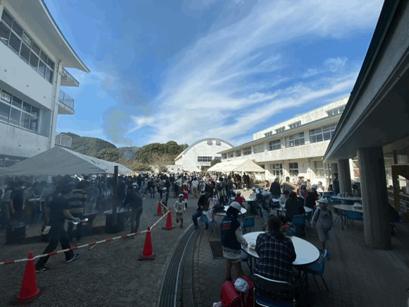 中庭では、うどんやハヤシライス、チーズハットグなどおいしい料理が振る舞われたり、体育館では、提供品の販売などが行われました。
