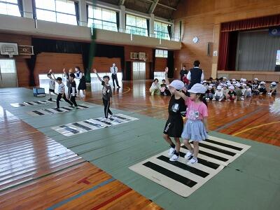 28日(月)に交通安全教室を行いました。当日は、あいにくの雨でしたので、体育館で実施しました。2校時が4・6年生、3校時が1・2年生、4校時が3・5年生でした。