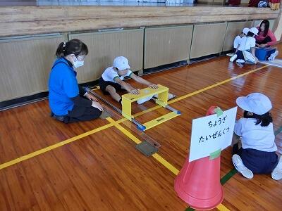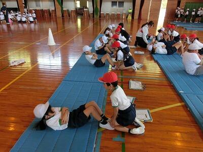 今回の種目は、握力、反復横跳び、立ち幅跳び、上体起こし、長座体前屈の5種目でした。やる気満々でそれぞれの種目に挑戦している子どもたちも多かったのですが、疲れましたという子どもたちもおりました。どんな種目がきつかったのかと尋ねたところ、多かったのは反復横跳びと上体起こしでした。でも、もてる力を発揮してしっかりと頑張っていました。