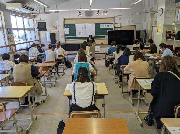 真剣に講話を聞く先生たちの研修の様子