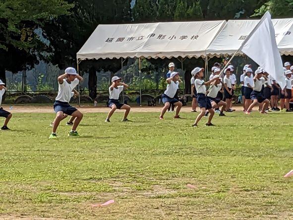花笠踊り保存会の方々の協力で6年生は花笠踊りの練習を行っています。伊形花笠踊りは県の無形民俗文化財に指定されており、本校では運動会で6年生が披露しています。6年生は暑い中、10月15日の運動会に向けて一生懸命に頑張っています。