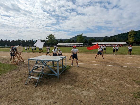 素晴らしい秋空の元、秋季大運動会が行われました。前日少し雨が降りましたが、雲一つない晴天に恵まれ、今回は観覧者に制限はなく、保護者や地域の方々もたくさん来られました。