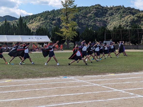 表現や徒競走、団技、リレー、新一年生のかけっこもあり、熱戦が繰り広げられ、競技の部が白団、応援の部が赤団の優勝という結果になりました。本当に子どもたちは一生懸命に取り組み、素晴らしい運動会になりました。この団結をさらに持続し、さらに素晴らしい伊形小になるようがんばっていきましょう。