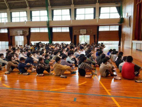 学校の様々なことに協力をしていただく方々をお招きし、体育館で対面式を行いました。普段から登下校の交通安全の見守りや稲作・芋作りのお手伝い、読み聞かせなど、様々な学校の教育活動にご支援をいただいている地域の皆さんから、自己紹介をしていただき、代表で学校運営協議会の稲吉さんから挨拶をいただきました。児童からも6年生が代表であいさつをしました。とても立派なあいさつでした。