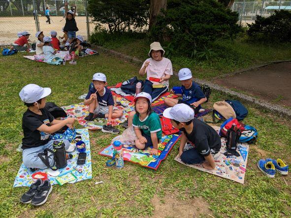 みんな礼儀正しく、先生の言うことをしっかりと聞いて行動できていました。おいしいお弁当とお菓子を頬張り、楽しい時間となったようです。残念ながら3年生と6年生はタイミングが悪く写真が撮れませんでした。すみません。