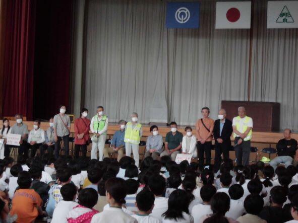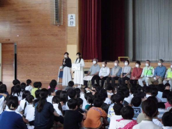 集会では、代表児童が、お越しいただいたボランティアの皆様お一人お一人に感謝状を手渡しました。