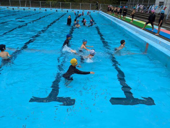 今日は3年生と4年生がプール開きを行いました。今日は曇りの天気で少し寒かったようですが、元気よく今年度の初プールを楽しみました。これから、10時間程度の水泳学習となりますが、ルールをしっかりと守って安全に気をつけながら頑張ってほしいと思います。今年は何メートル泳ぐとかの目標をしっかりと設定して、頑張ることが泳力を向上につながります。布団の上とかでも練習はできますので、是非チャレンジしてほしいですね。
