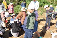 11月15日、学校ボランティアの方の協力をいただき、2年生がイモ掘りをしました。子どもたちの顔ほどもある大きなサツマイモもあり、子どもたちは大興奮。収穫したサツマイモを使って、12月に「おいもパーティー」をします。