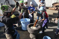 12月9日、5年生は、地域の皆様や保護者の皆様の協力をいただき、もちつきを体験しました。地域の方に教えていただきながら杵でもちをつき、つきあがったもちを小さく丸めていきました。「はじめは難しかったけど、地域の人に教えてもらって少しずつ上手につけるようになりました。」と5年生。ご協力ありがとうございました。充実した活動となりました。