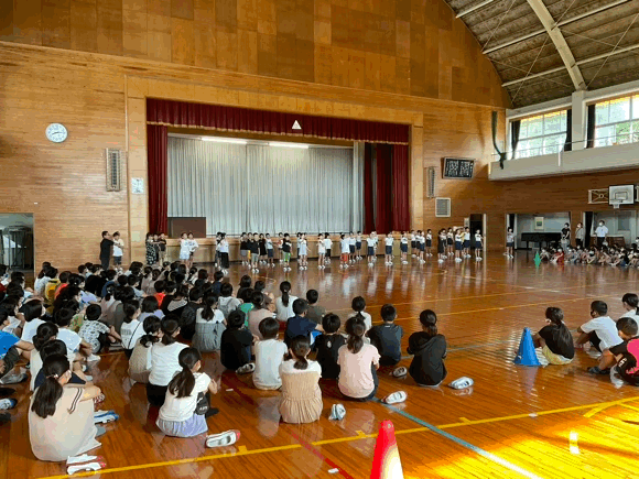 今年度は、めずらしい同点優勝という結果でした。応援賞は白団。子どもたちの頑張りに大きな拍手!