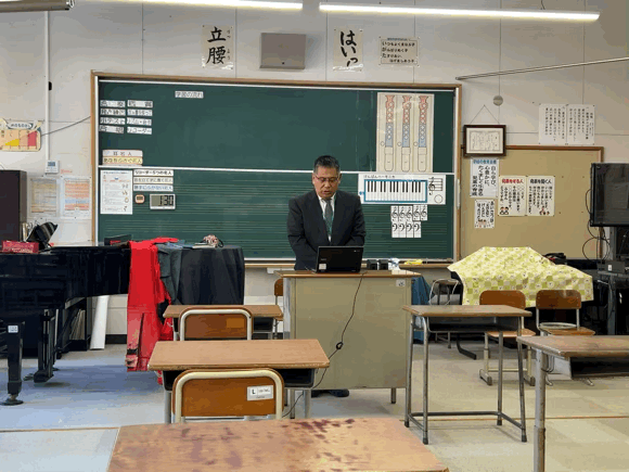 1月17日。昨年12月に福祉委員会を中心に行いました募金活動で集まったお金を延岡市社会福祉協議会に渡しました。この日は、延岡市社会福祉協議会の方にお越しいただき、福祉委員会の代表児童2名が集まった募金を手渡しました。全校児童、保護者の皆様ご協力ありがとうございました。地域の福祉のために役立てていただけるそうです。