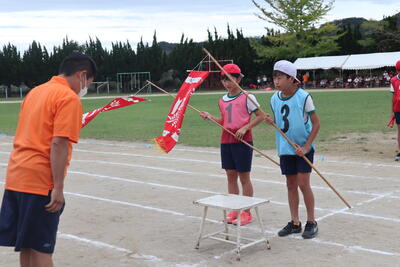 運動会総練習を10月7日(金)に行いました。開閉会式や一部の競技を行い、係の動きなどを確認しました。