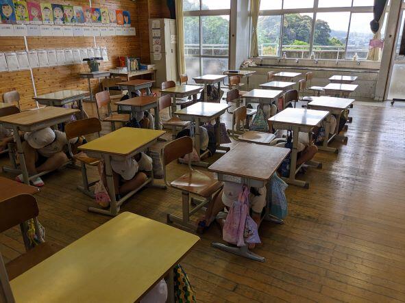 朝の時間に避難訓練(地震・津波)が行われました。教頭先生からの地震発生のアナウンスが流れ、子どもたちは机の下に入り込みました。しばらくして津波のアナウンスが入り、児童全員が3階の廊下まで避難しました。伊形小学校の場合、高台に立地しているため、学校にいれば津波を心配することはないですが、登下校中に地震に遭遇したときはとても心配です。ご家庭でも万一の時に備え、どこに避難するのかをしっかりと決めておいてほしいと思います。