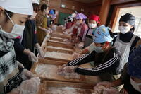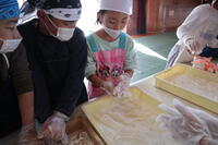 12月9日、5年生は、地域の皆様や保護者の皆様の協力をいただき、もちつきを体験しました。地域の方に教えていただきながら杵でもちをつき、つきあがったもちを小さく丸めていきました。「はじめは難しかったけど、地域の人に教えてもらって少しずつ上手につけるようになりました。」と5年生。ご協力ありがとうございました。充実した活動となりました。