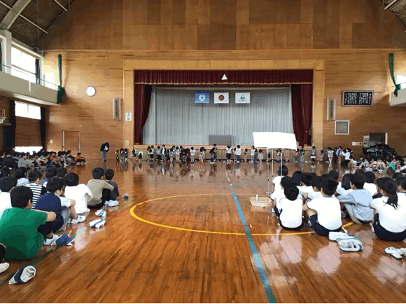 3年生から6年生が学校生活のことについて、寸劇で紹介しました。