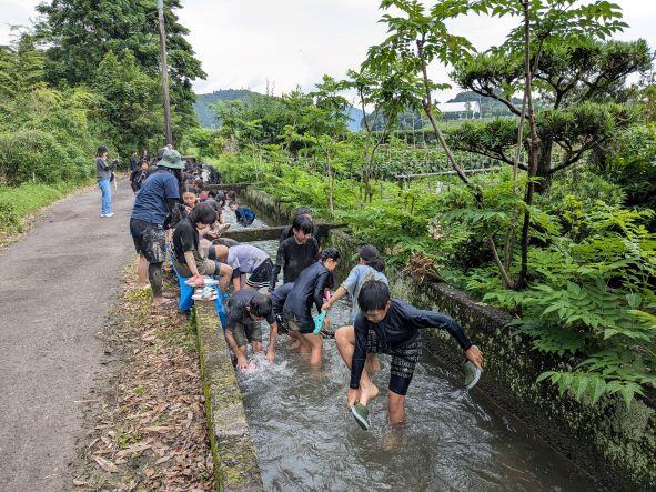 今日は5年生が田植えを行いました。約1アール程度の田んぼをお借りし、餅米の苗を手植えで植えていきました。雨の予報でしたが、ほとんど雨も降らず曇りだったので、気温も高くなく、熱中症を気にすることもなく、活動できました。地域・保護者・関係機関の皆さんの支援をいただき無事に田植えを行うことができました。いつもありがとうございます。初めてする子どもも多く、はじめはなかなか植え方もうまくいきませんでしたが、経験を積むごとに早くて、上手に植えることができるようになりました。田んぼの観察も行いながら、稲刈り、餅つきなどの活動もしっかりやっていってほしいと思います。