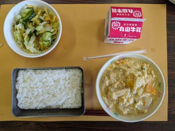 今日の献立は、中華丼、春雨の酢の物、牛乳です。梅雨のじめじめした日には春雨の酢の物はさっぱりしていて、食欲が増します。中華丼はウズラの卵がないので、もの足りない気もしますが、おいしくいただきました。
