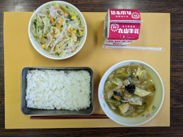 今日の献立は、中華丼、春雨の酢の物、牛乳です。梅雨のじめじめした日には春雨の酢の物はさっぱりしていて、食欲が増します。中華丼はウズラの卵がないので、もの足りない気もしますが、おいしくいただきました。