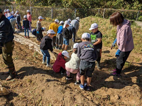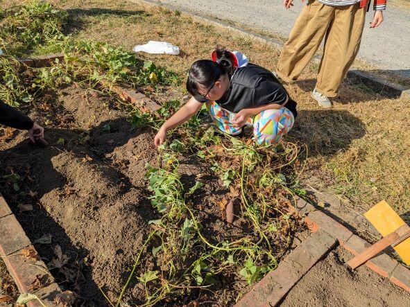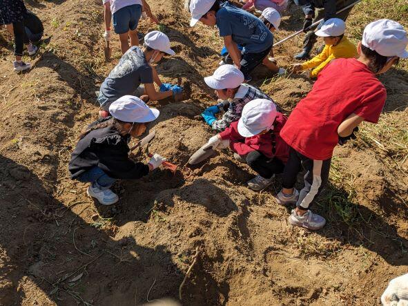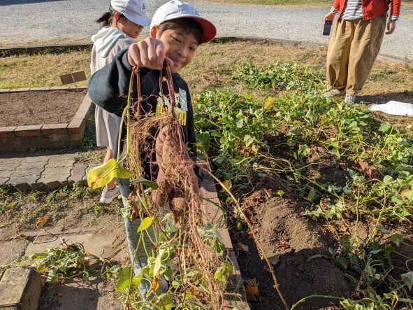 しらとり2組の子どもたちが学級園で育てたお芋の収穫をしました。狭い学級園ですが、とても大きなお芋も収穫できました。意外にたくさんのお芋が収穫でき、子どもたちも大喜びでした。