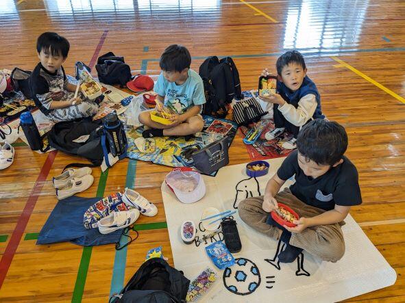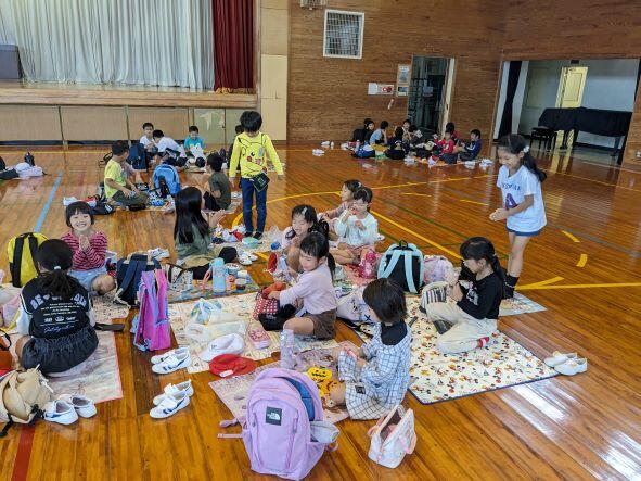 今日は遠足でしたがあいにくの雨により、校内遠足となりました。教室や体育館でレクリエーションをしたり、映画鑑賞をしたりして午前中を過ごしました。お昼にはお弁当を広げ、みんなでおいしいお弁当を食べました。キャラ弁もたくさんあり、すごかったです。みんな残さずたくさん食べていました。