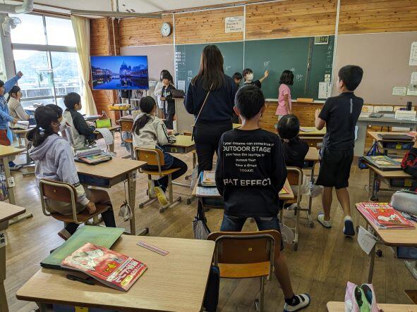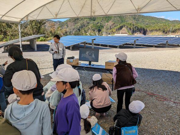 今日は3年生が学校近くにある延岡くじら池太陽光発電所を見学しました。東京ドーム約8個分の敷地に19,236枚のソーラーパネルが設置され、年間1580万kW、5,266世帯が使える電気が発電されているそうです。昔作られたくじら池にちなんで発電所の名前が付けられたそうです。子どもたちは広い敷地内を車に乗って、その広さを感じ取っていました。また、日本国土開発株式会社の職員から太陽光や施設のことについて説明を受け、最後には施設全体をドローンで撮影し、空からの映像を見ることができ、とても喜んでいました。